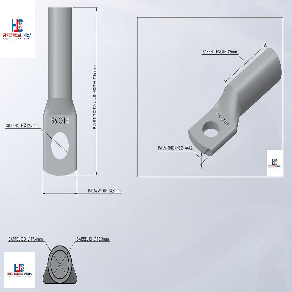 Aluminium Lug 95 Sq Mm heavy-duty electrical applications के लिए designed है।